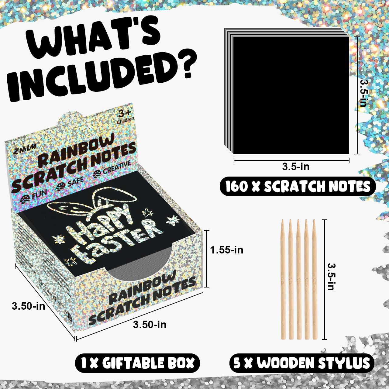 Silver Scratch Art Mini Notes: 160 sheets of holographic scratch paper note cards (Size: 3.5*3.5inch /8.5*8.5cm) and 5 Styluses(3.5inch/8.5cm). Doodle, leave notes, write Lists and create cool illustrations and designs