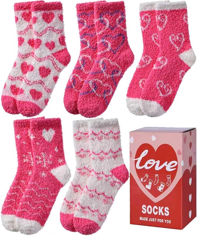 Set of 5 Valentine's Day soft fluffy socks: Microfiber fabric and super soft. Moderate thickness; regular sizes, fits size 5-10