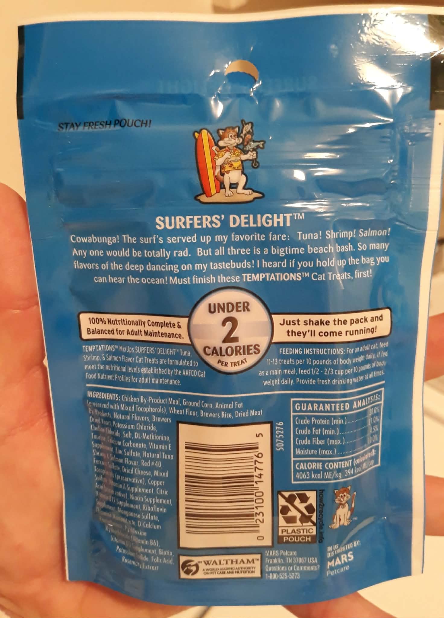 ~Package of Temptations Mix-Ups cat treats (Surfer's delight - tuna/shrimp/salmon flavor). 1 ounce package