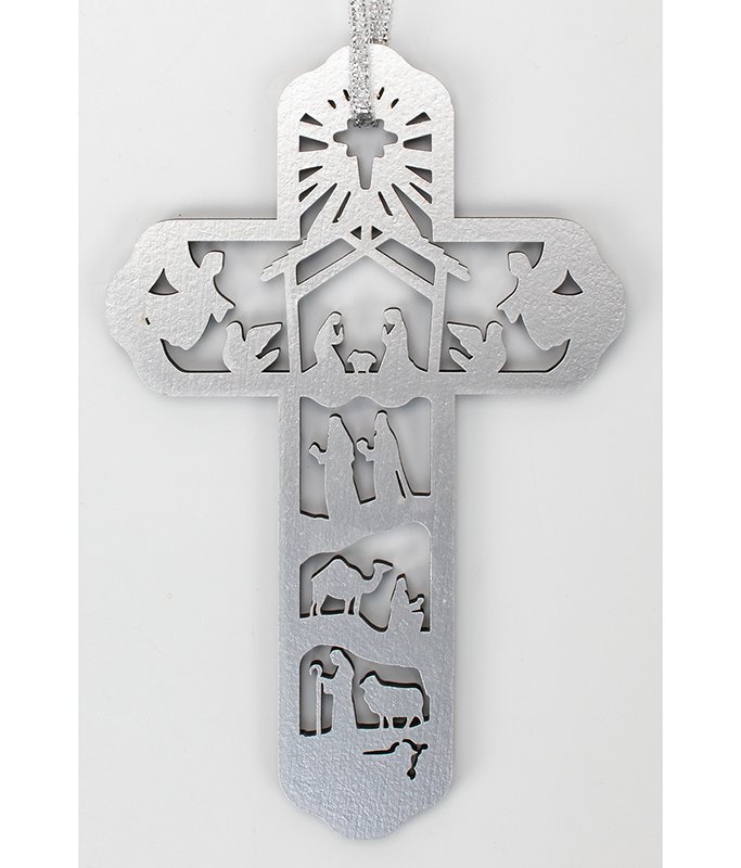 Nativity Cross Ornament, Silver