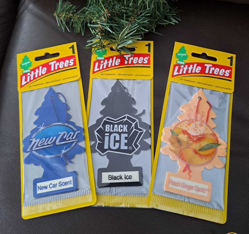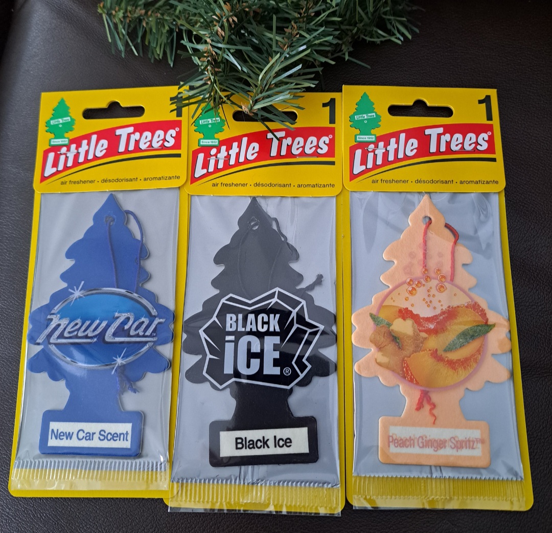 Made in the USA! 3 single packets of Little Trees Air Fresheners. Perfect for home or car! 3 different scents, Black Ice, New Car, and Peach Ginger Spritz. New in packages. Comes from my nonsmoking home. Always FREE SHIPPING