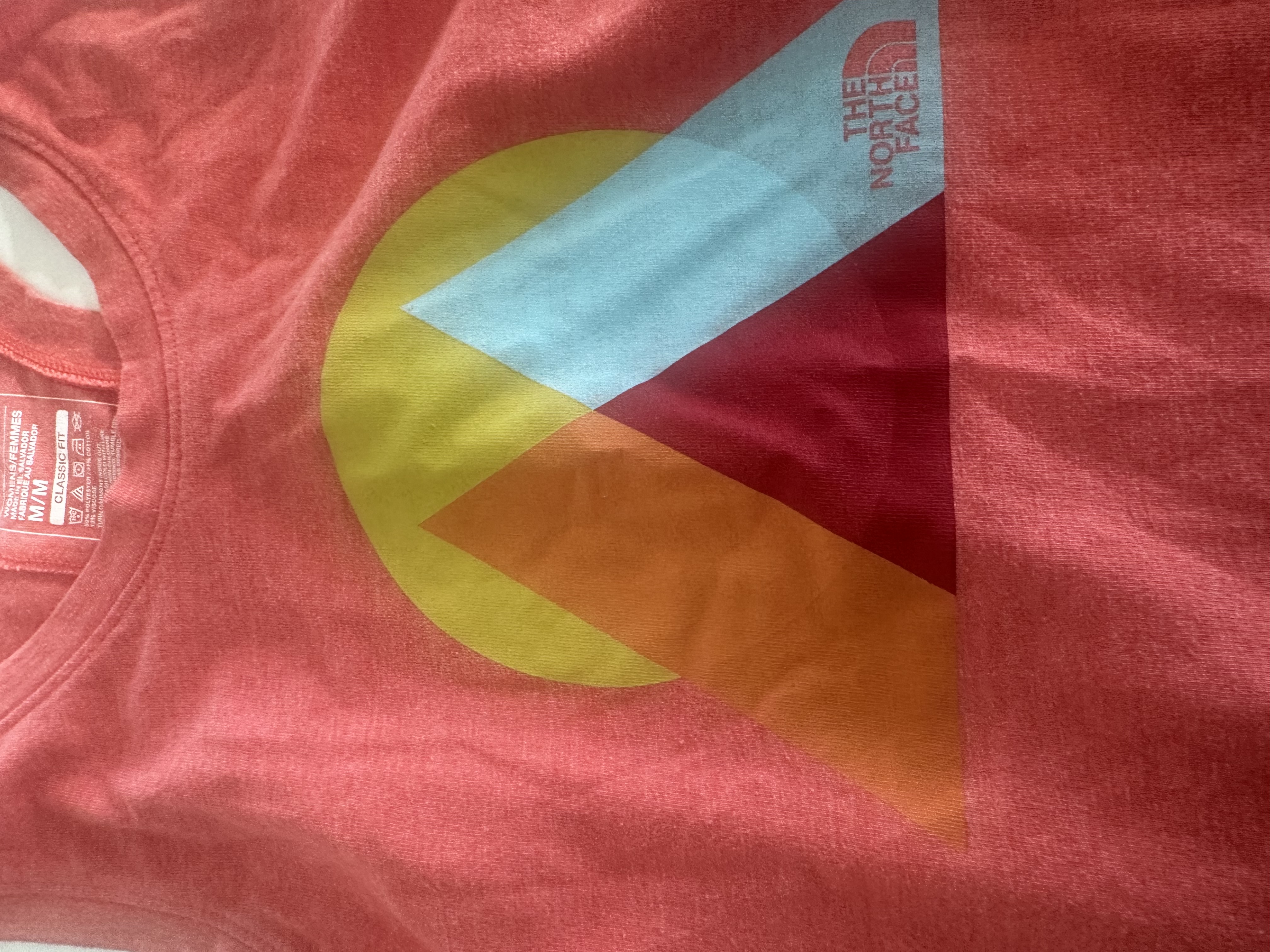 The Northface Tank- depicting a mountain scape view on pretty coral backdrop. Size Med - Pit to pit measures up to 18 (36) - I’m a 36 DD and I have plenty of room- depends how you like your tanks to fit.