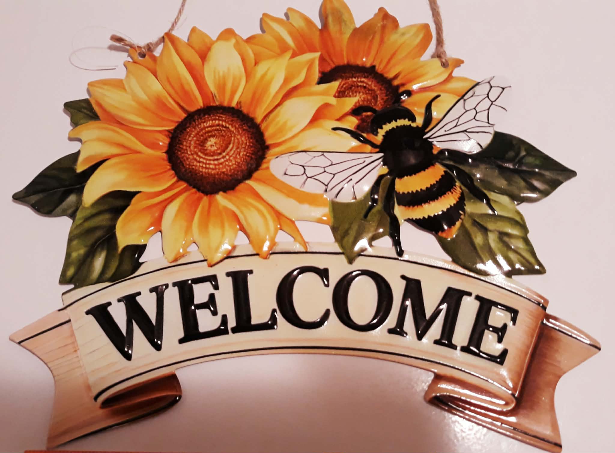 ~Spring-like welcome sign - says "Welcome" with sunflower and bee