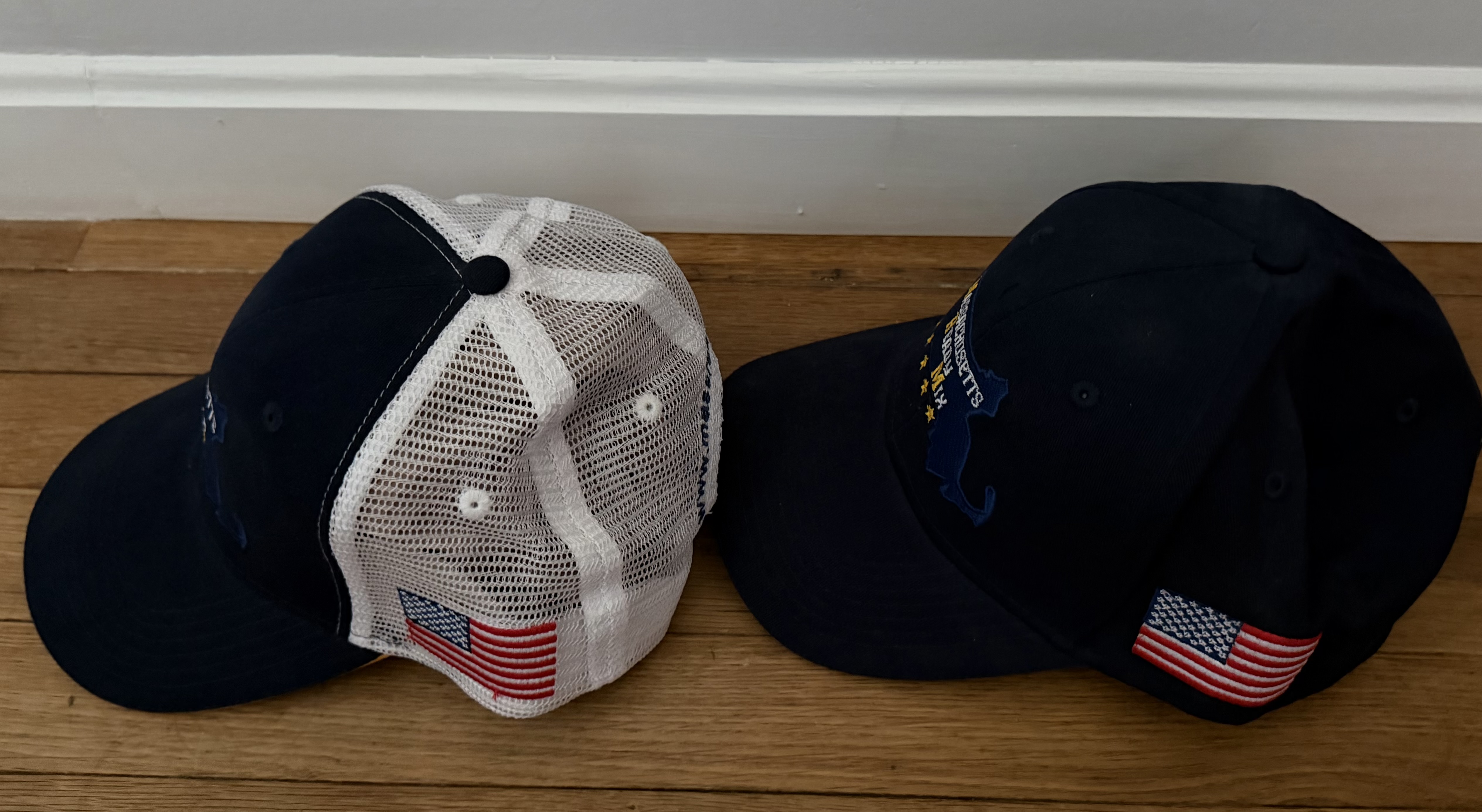 NEW Baseball Caps ~ MASSACHUSETTS READY MIX w American Flag Emblem