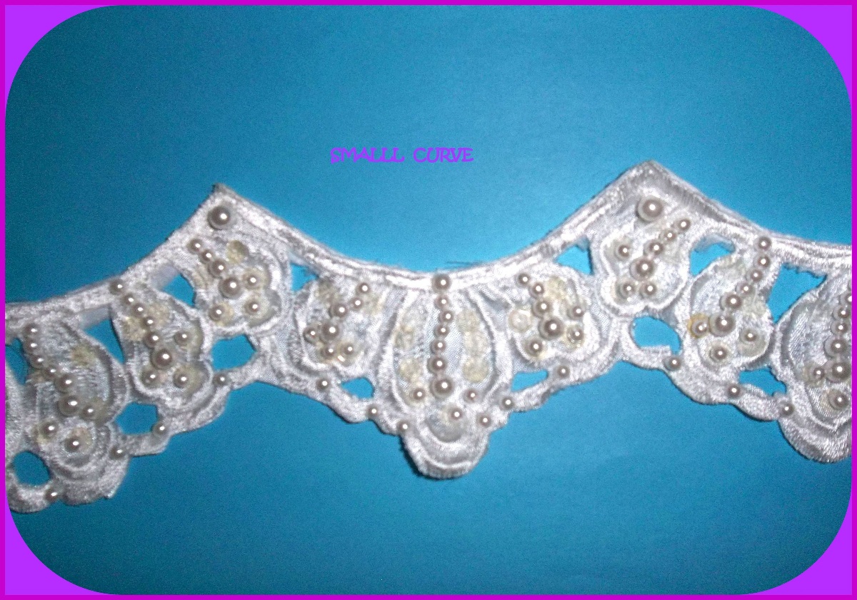 Beautiful vintage piece of white pearl & sequin trim as shown. There are 2 lengths of curves in the trim, they alternate. 36 inches Beautiful on tiaras, veils, crowns, dance clothes, doll clothes and much more! Even floral designs! Enlarge for details and ask any questions