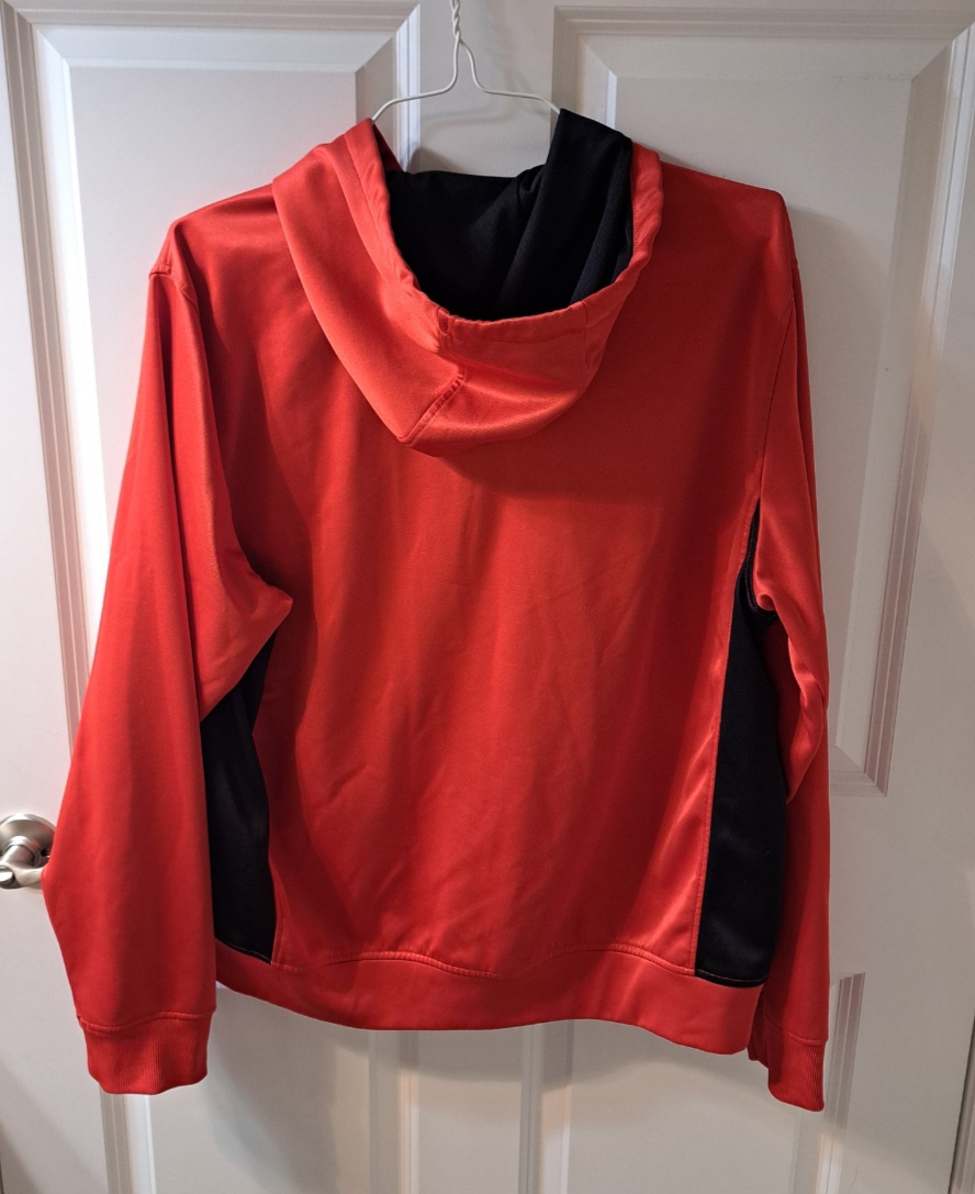 Very nice, used, but great condition, FILA zipper front hoodie. Size Large, but it fits more like an Extra Large. Measurements are in the photos. 100% Polyester. Comes from my nonsmoking home. Always FREE SHIPPING