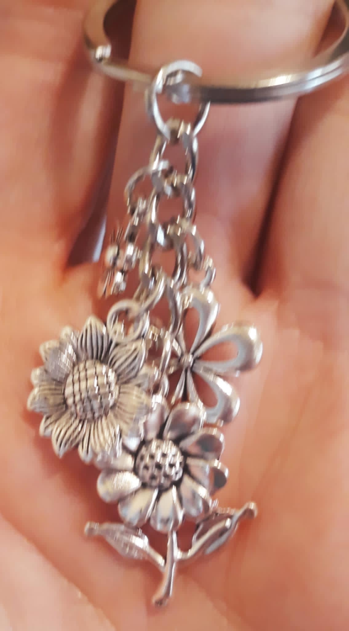 Silvertone floral keychain
